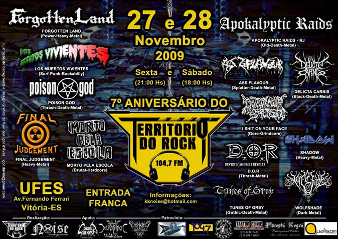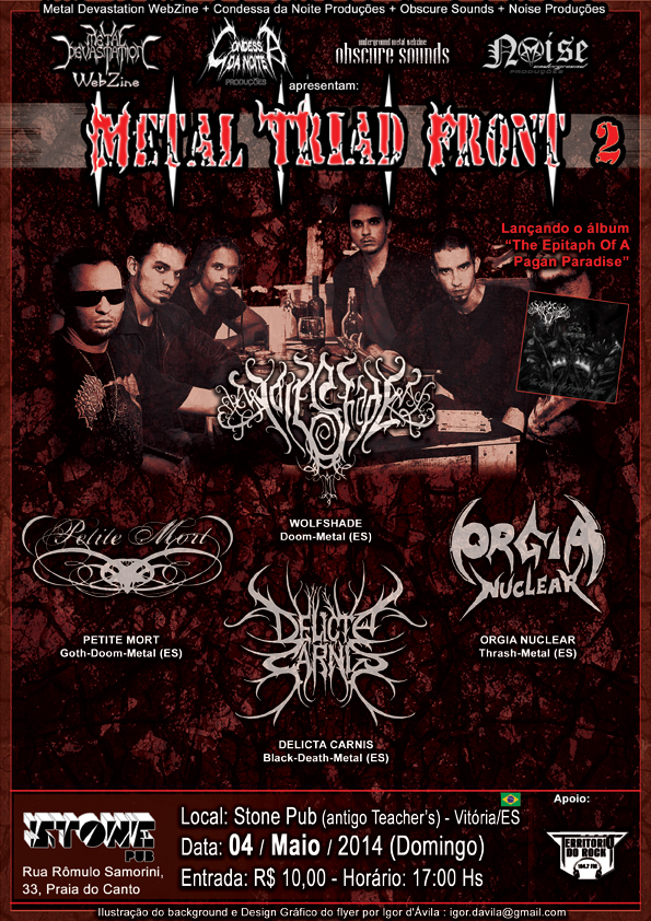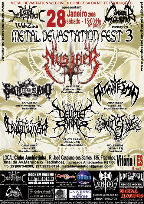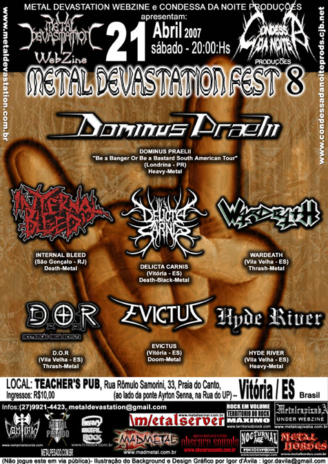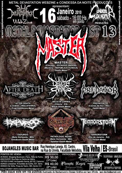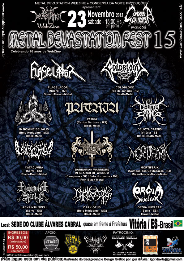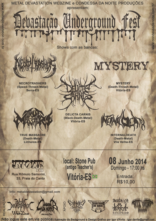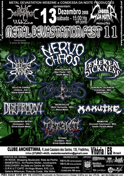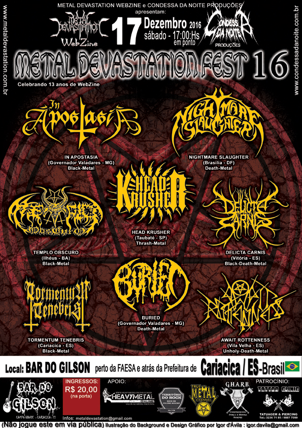 Av.Brasil 1220, 15:00Hs, R$10,00(antecipado), info: metaldevastation@gmail.com ou yuri.metalhordes@gmail.com