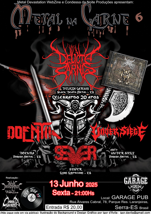 Rua José Caciano dos Santos, 135, Fradinhos, 15:00Hs em ponto, R$7,00 antecipado, info:(27)-9973-6203, (27)-9973-6194, metaldevastation@gmail.com