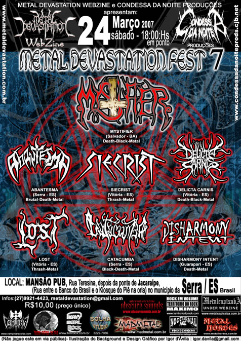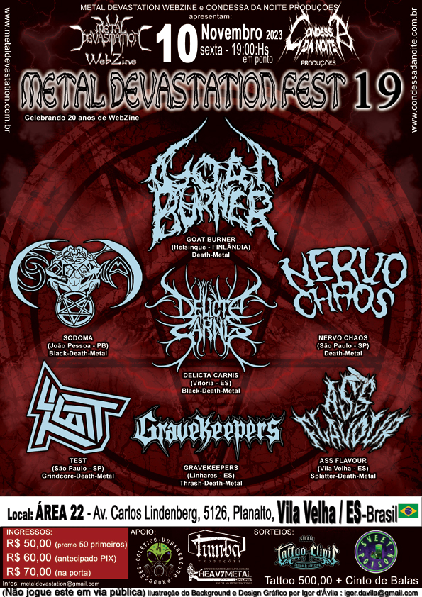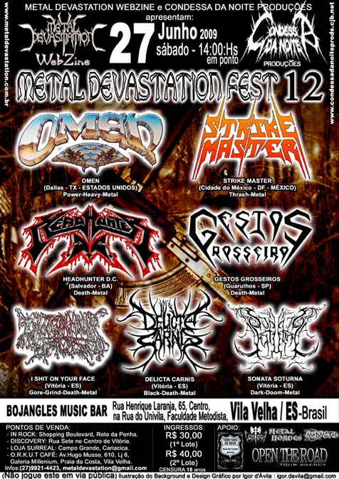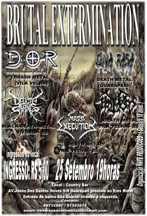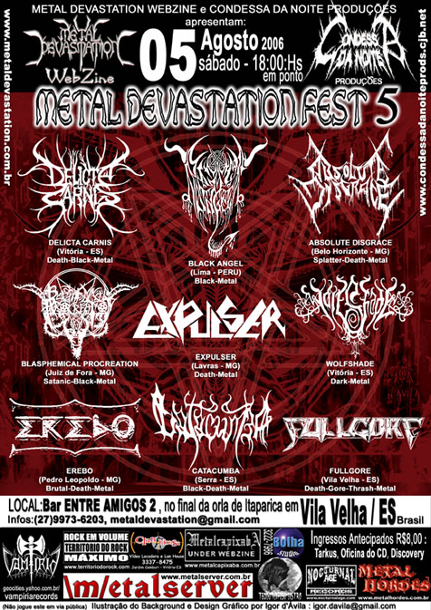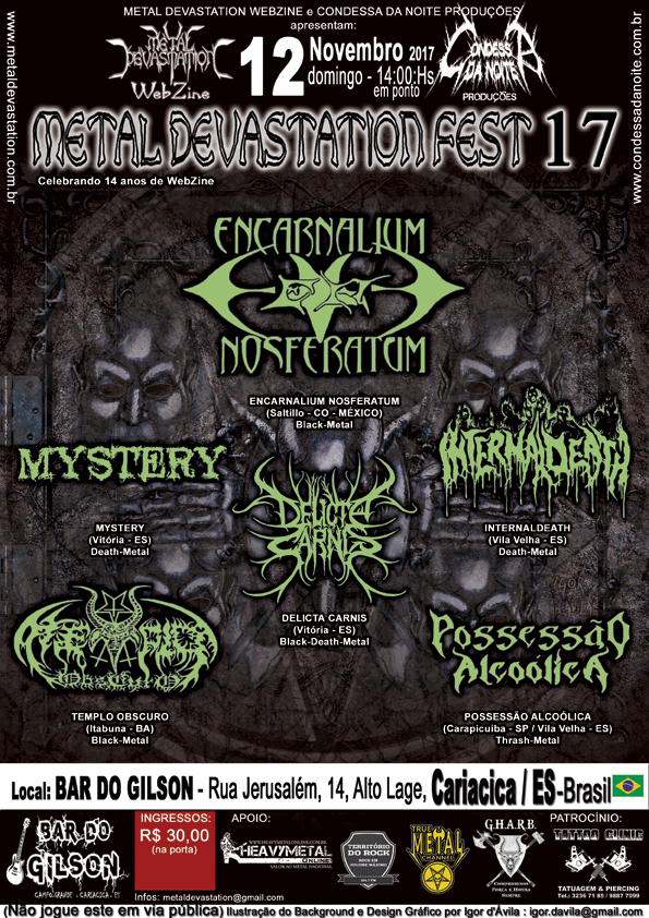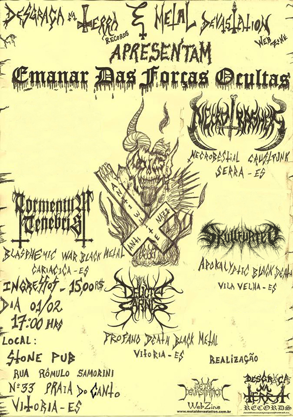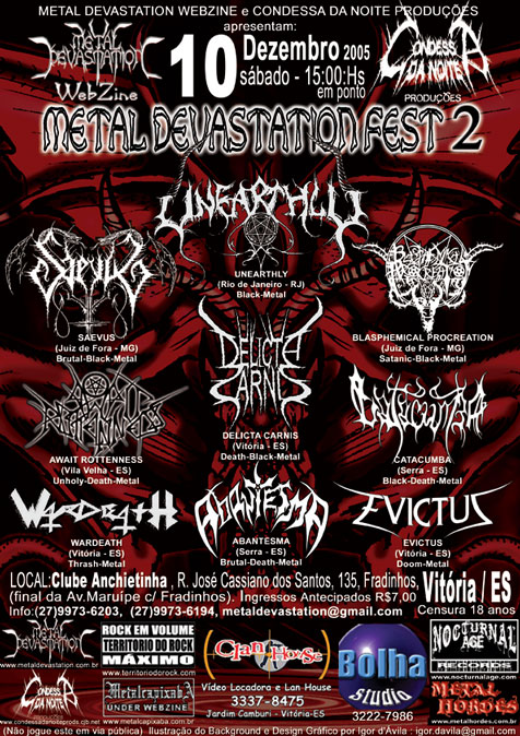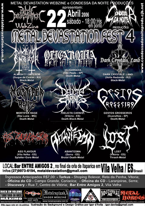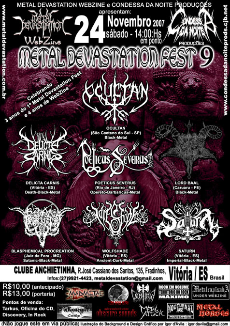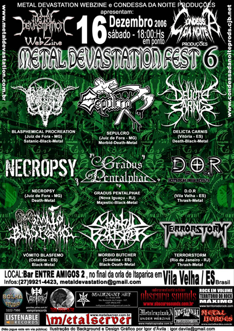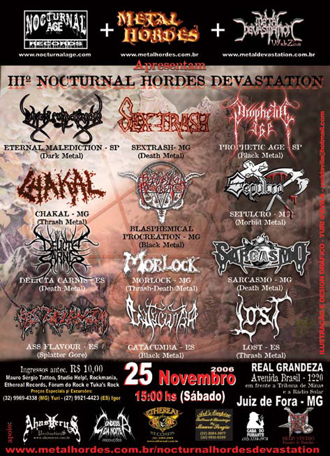 Av.Brasil 1220, 15:00Hs, R$10,00(antecipado), info: metaldevastation@gmail.com ou yuri.metalhordes@gmail.com