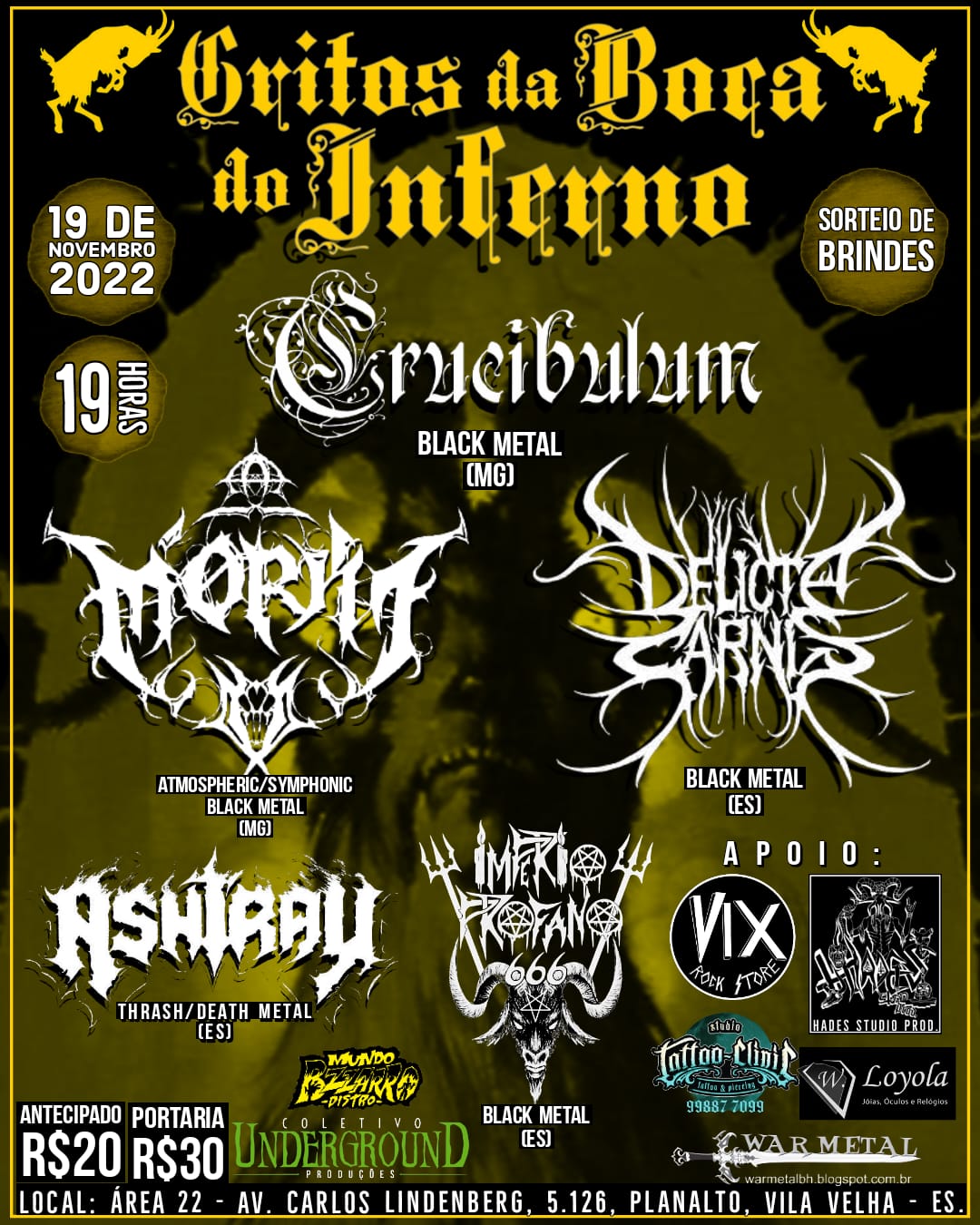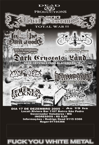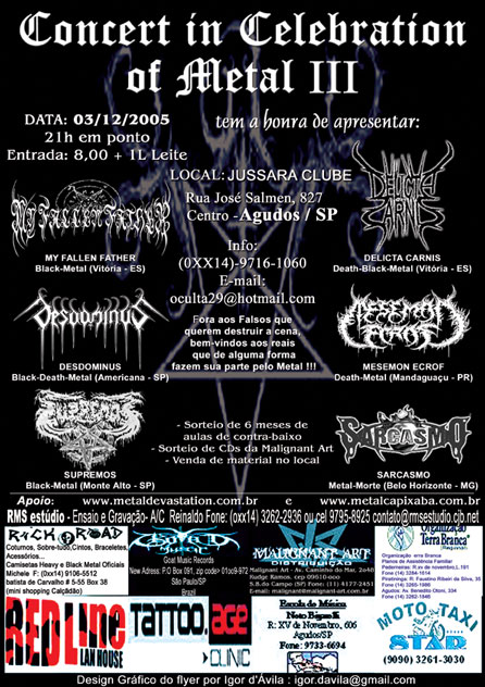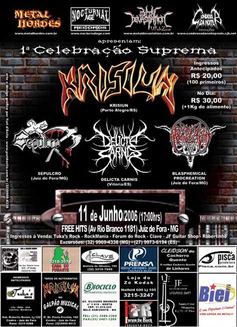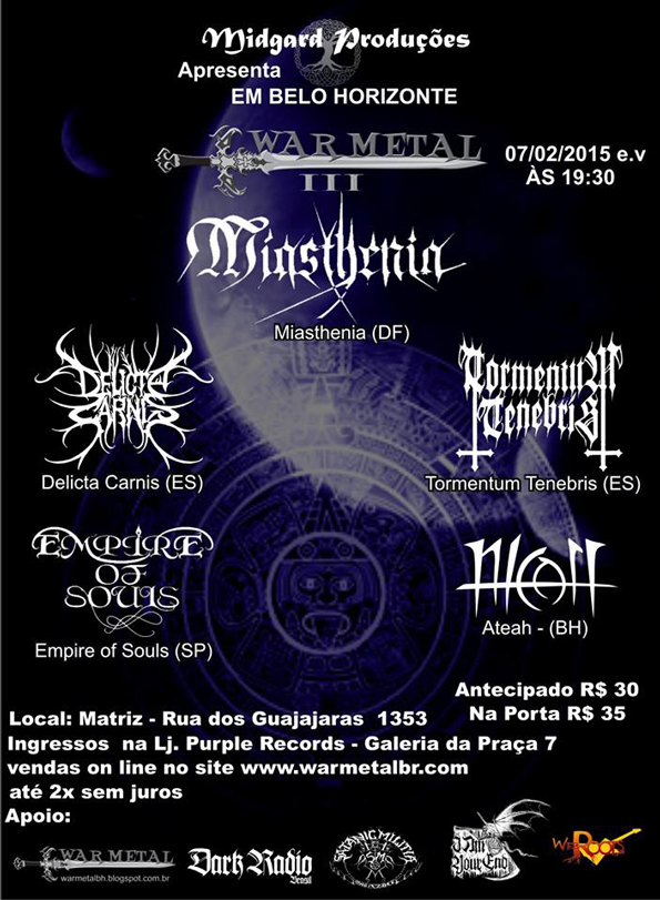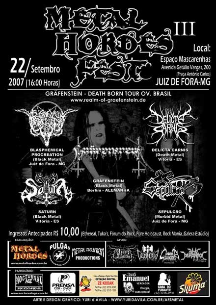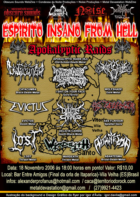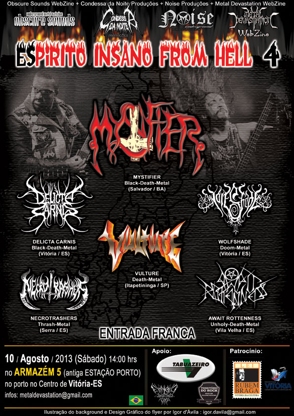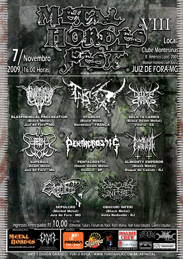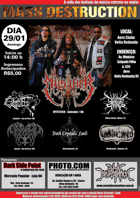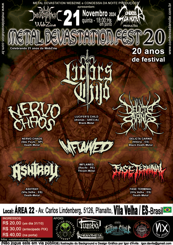 Av.Brasil 1220, 15:00Hs, R$10,00(antecipado), info: metaldevastation@gmail.com ou yuri.metalhordes@gmail.com