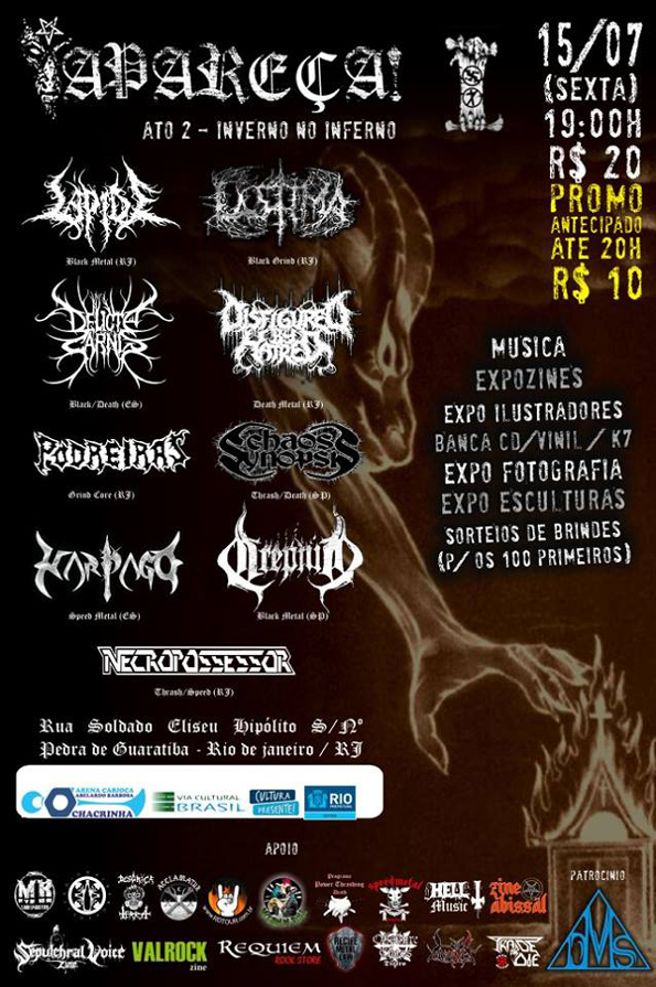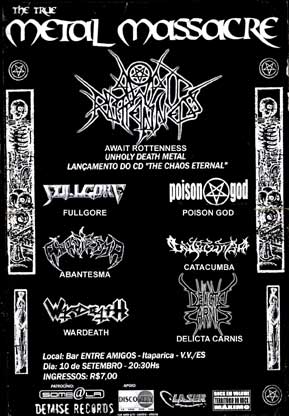 Luxúria de lillith (GO), Delicta Carnis (ES), Funeral Putrid (SP), Sangue de Bode (RJ), Await Rottenness (ES)