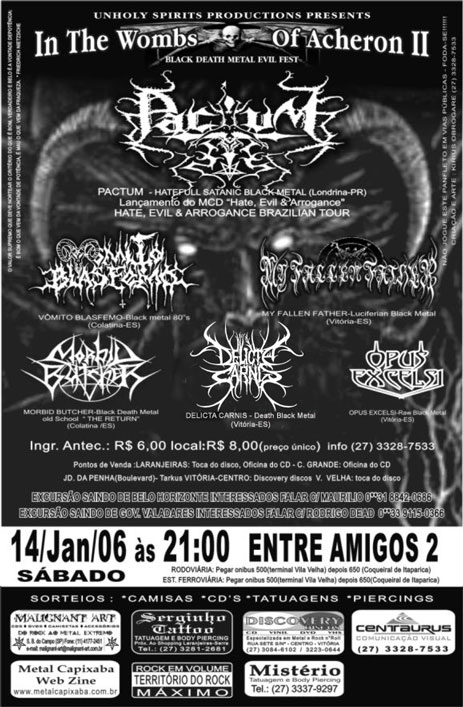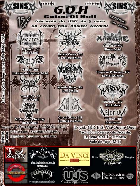 Flageladör, Coldblood, In Nomine Belialis, Patria, Delicta Carnis, Catacumba, Barbarian Warriors In Search Of Wisdom, Mortiferik, Labyrinth Spell, Dark Opus, Orgia Nuclear