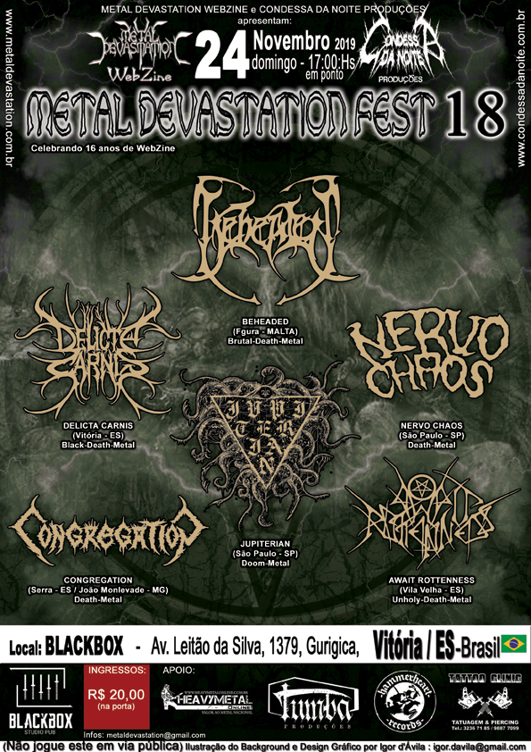 Av.Maruípe, Maruípe, 16HS, R$8,00, Info: metaldevastation@gmail.com
