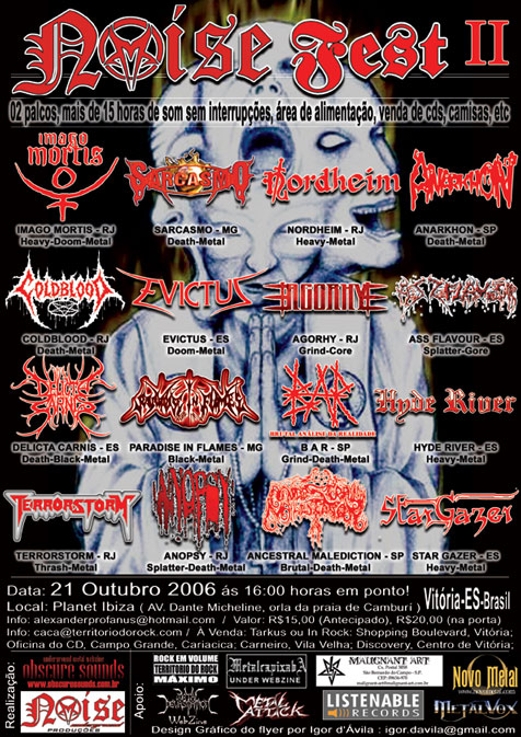 Imago Mortis, Sarcasmo, Nordheim, Anarkhon, Coldblood, Evictus, Agorhy, Ass Flavour, Delicta Carnis, Paradise In Flames, B A R, Hyde River, Terrorstorm, Anopsy, Ancestral Malediction, Star Gazer
