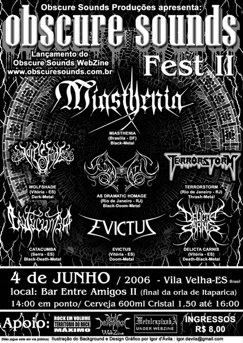 Miasthenia-DF, Wolfshade-ES, As Dramatic Homage-RJ, Terrorstorm-RJ, Catacumba-ES, Evictus-ES, Delicta Carnis-ES